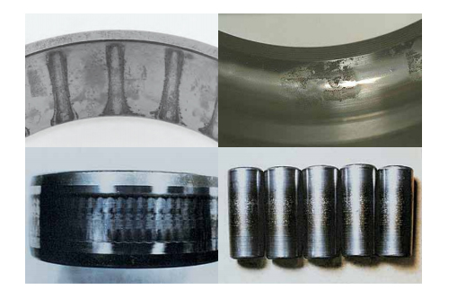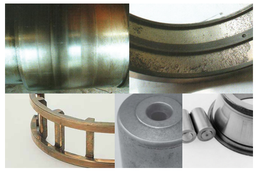 磨損失效是各類軸承常見的失效模式之一,按磨損形式通??煞譃?**常 見的磨粒研磨磨損和粘著磨損。 磨粒磨損系指軸承工作表面之間擠入外來堅硬粒子或硬質(zhì)異物或金屬表面的磨屑且 接觸表面相對移動而引起的磨損,常在軸承工作表面造成犁溝狀的擦傷。 粘著磨損系指由于摩擦表面的顯微凸起或異物使摩擦面受力不均,在潤滑條件嚴(yán)重 惡化時,因局部摩擦生熱,易造成摩擦面局部變形和摩擦顯微焊合現(xiàn)象,嚴(yán)重時表面金 屬可能局部熔化,接觸面上作用力將局部摩擦焊接點從基體上撕裂而增大塑性變形。