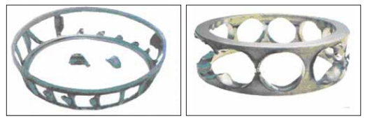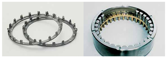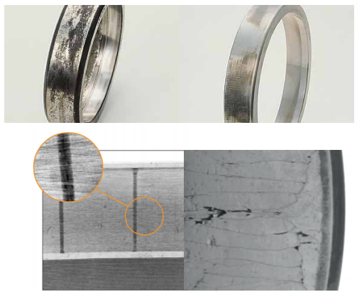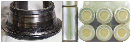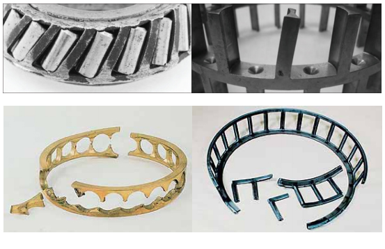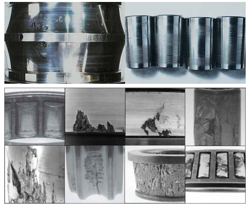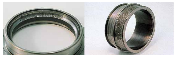e.保持架材料缺陷(如裂紋、大塊異金屬夾雜物、縮孔、氣泡)及鉚合缺陷(缺釘、墊釘或兩半保持架結(jié)合面空隙,嚴(yán)重鉚傷)等均可能造成保持架斷裂。采取對策為在制造過 程中加以嚴(yán)格控制。
